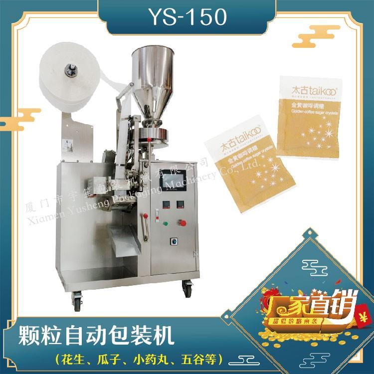YS-150 自動包裝機特 點 1、適用于方便面行業(yè)湯包,干燥劑,沖劑,碎茶等小顆粒狀物品包裝。2、可自動完成制袋、計量、充填、封合、分切及計數(shù)等功能。3、包裝材料:茶葉濾紙、復合膜、無紡布。 封口方式三邊封 技術參數(shù)計量范圍:10 - 60 g(6 ~ 50 ml)制袋尺寸:長 ( L ) : 70 - 150 mm 寬 ( W …
