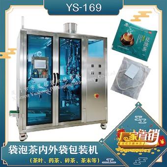 YS-169 新一代 袋泡茶內(nèi)外袋包裝機特 點 1、適用于茶葉、藥茶、保健茶草根類等小顆粒物的內(nèi)外袋一次性包裝。2、內(nèi)、外袋拉膜由步進電機控制,袋長穩(wěn)定、定位準確。3、采用PID調(diào)節(jié)溫度控制器,溫度控制得更準確。4、采用PLC控制整機的動作,人機界面顯示,保證產(chǎn)品的衛(wèi)生可靠。5、包裝材料:茶葉濾紙、棉線、復合膜及標簽。 …