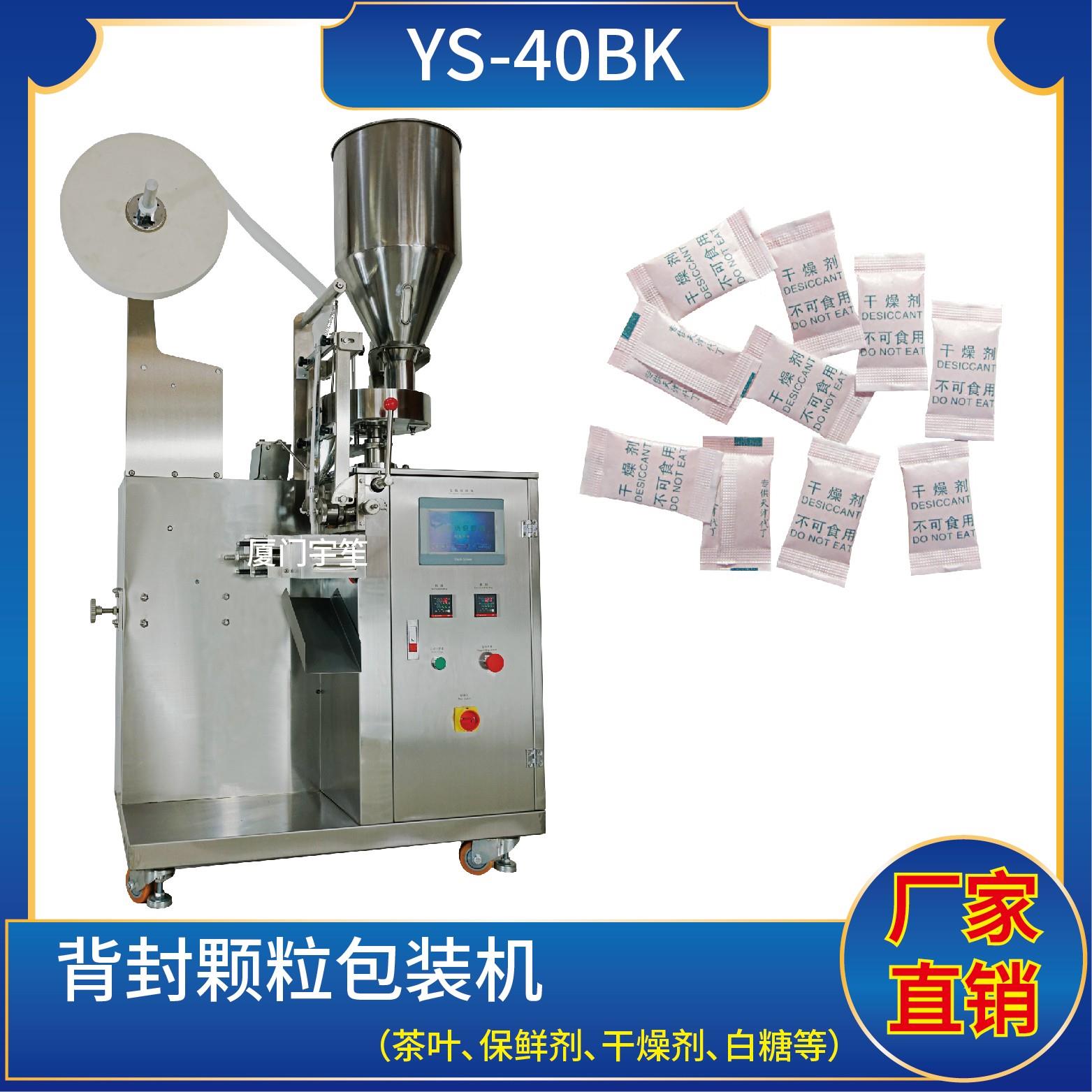 YS-40BK 顆粒自動包裝機特 點 1、適用于方便面行業(yè)湯包,干燥劑,沖劑,碎茶等小顆粒狀物品包裝。2、可自動完成制袋、計量、充填、封合、分切及計數(shù)等功能。3、包裝材料:茶葉濾紙、復合膜、無紡布。封口方式背封 技術參數(shù)計量范圍:10 - 40 g(0.6 ~ 33 ml)制袋尺寸:長 ( L ) : 40 - 110 mm 寬 …