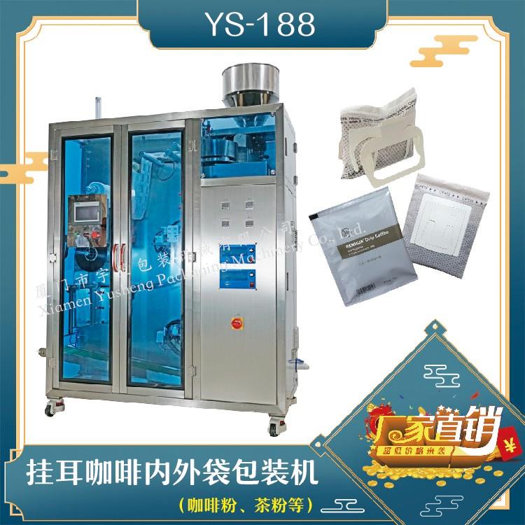 YS-188 掛耳咖啡內外袋包裝機(新框式)特 點 1、適用于咖啡粉、小顆粒狀物料。2、采用特定的掛耳式濾網(wǎng)、三邊封口、直接掛在杯子邊緣,咖啡沖泡效果更好,且袋型美觀,目前國外市場非常流行。3、本機具有自動完成制袋、計量、充填、封合、分切、計數(shù)、打印批號等功能。4、內袋為無紡布掛耳袋,沖泡方便且衛(wèi)生。封口采用先進…
