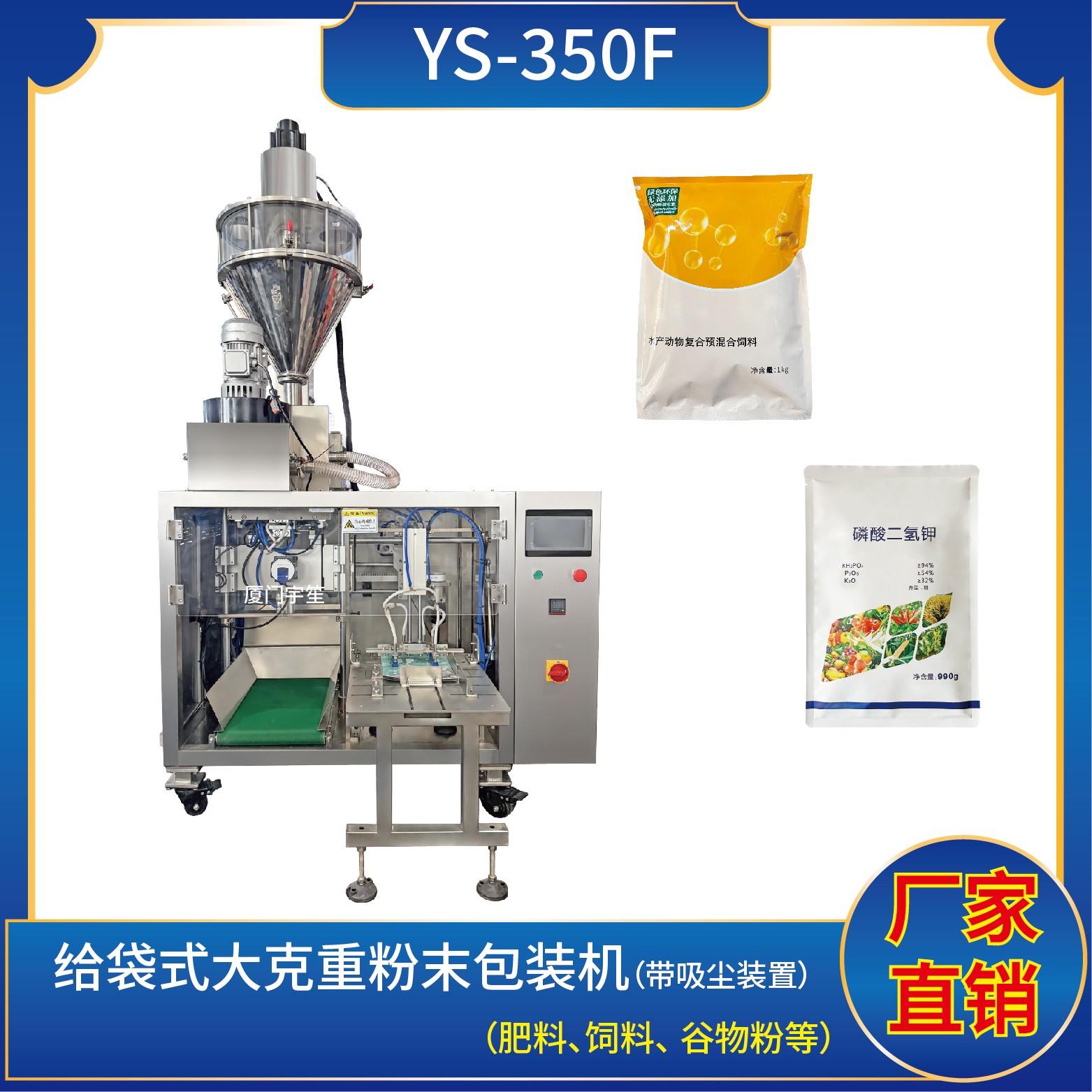 YS-SP350F 給袋式粉末包裝機特 點 Characteristic1、適用于食品、醫(yī)藥、化工、化妝品行業(yè)中粉劑等大克重物品的計量包裝,如:面粉、玉米粉、農(nóng)藥粉等。2、包裝流程全自動,無需人工操作??筛鶕?jù)充填物料的性質(zhì)選配不同的下料結(jié)構(gòu)。3、采用觸摸屏操作,PLC控制,封口溫度自動補償,控溫精準(zhǔn),封口美觀大方。4、包裝材料:PE…