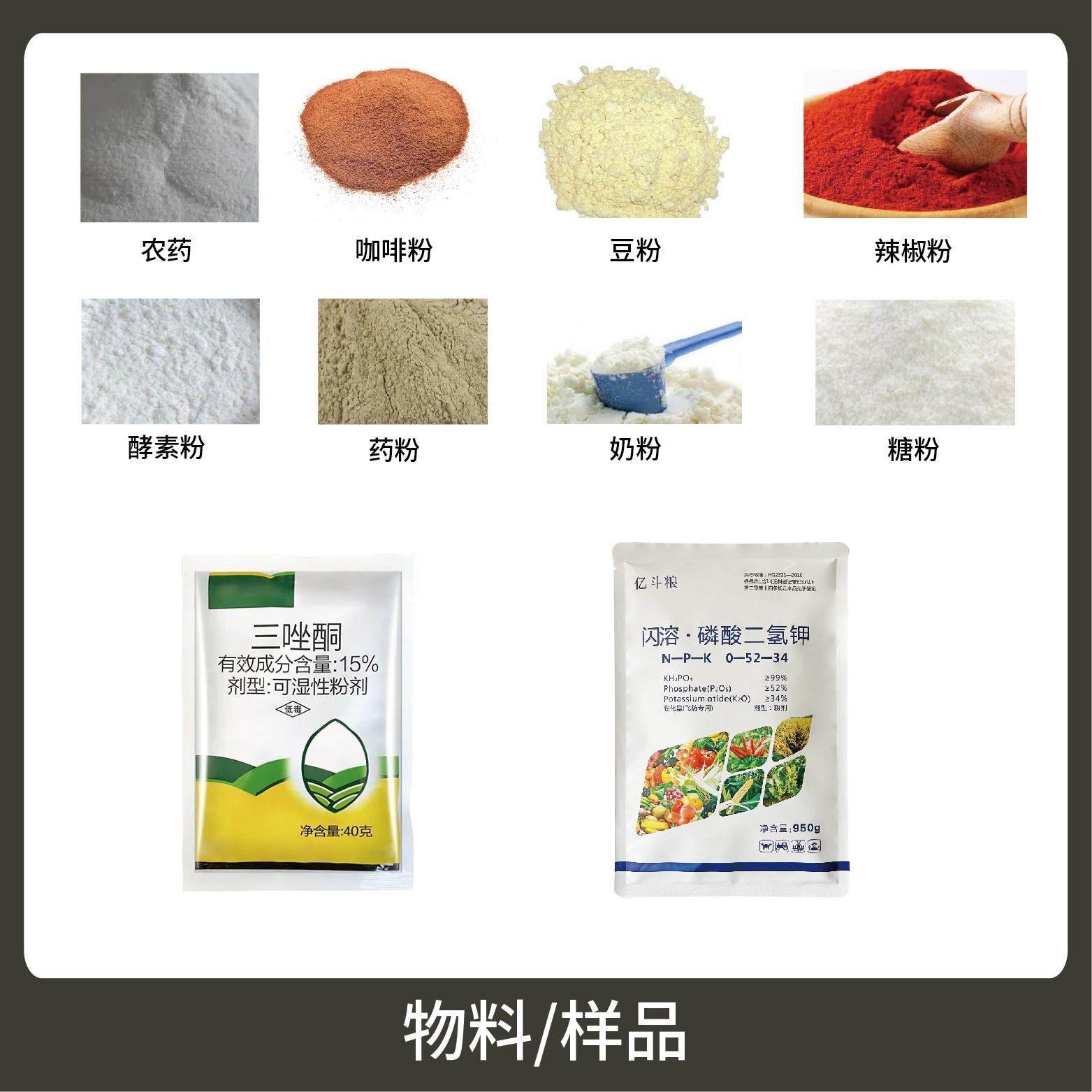 1、適用于食品、醫(yī)藥、化工、化妝品行業(yè)中粉劑等大克重物品的計量包裝,如:面粉、玉米粉、農(nóng)藥粉等。