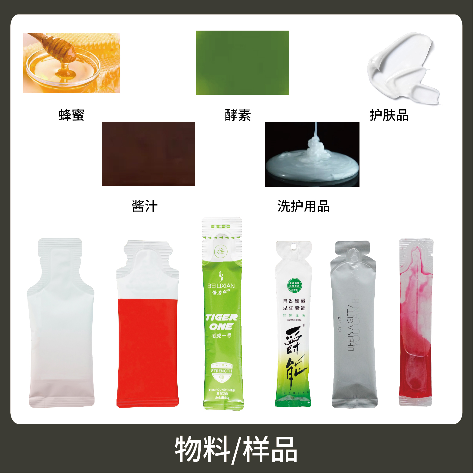 Suitable for the irregular bag metering and packaging of pastes and liquids like enzymes, fruit juices, mouthwash, toiletries, hair dyes, and cosmetic sample sachets in various industries.