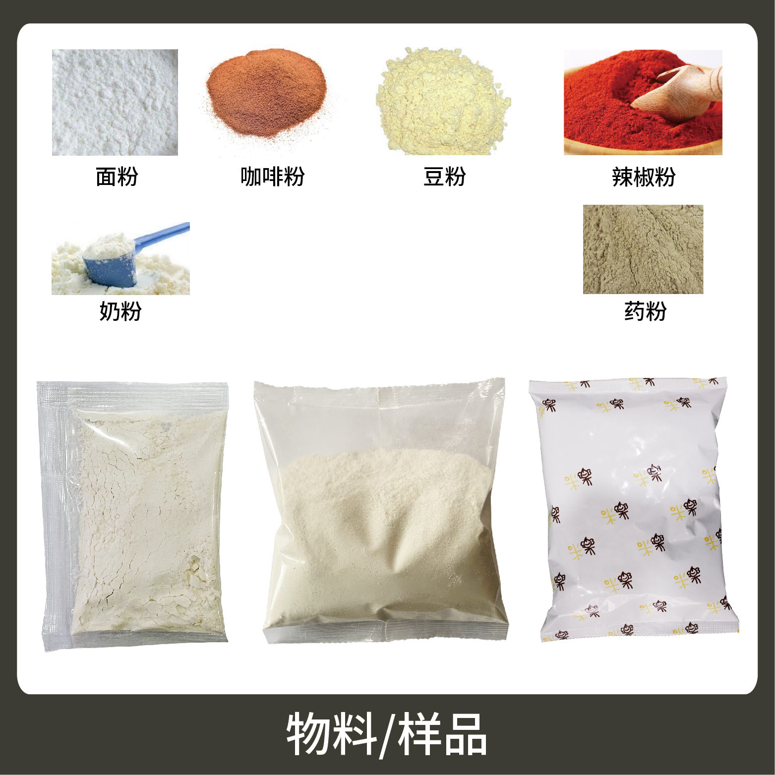 1、適用于食品、醫(yī)藥、化工、化妝品行業(yè)中顆粒、粉劑、液體、醬料等物品的計量包裝,如:面粉、糖粉、咖啡粉、谷物粉等。